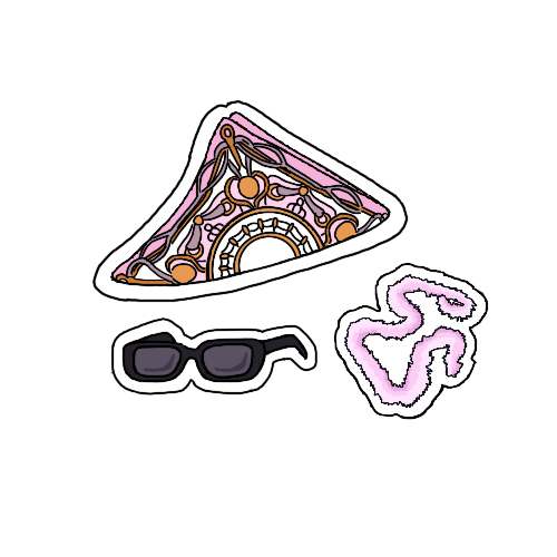 Filler stickers. Inspired from the rhinestone stickers on her face on the album cover. A little bit of sparkle/glitter is very on brand for Olivia's art.