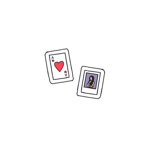 A polaroid and ace of hearts playing card jammed into the side of the vanity. The polaroid picture is the same as the one on the SOUR album cover.